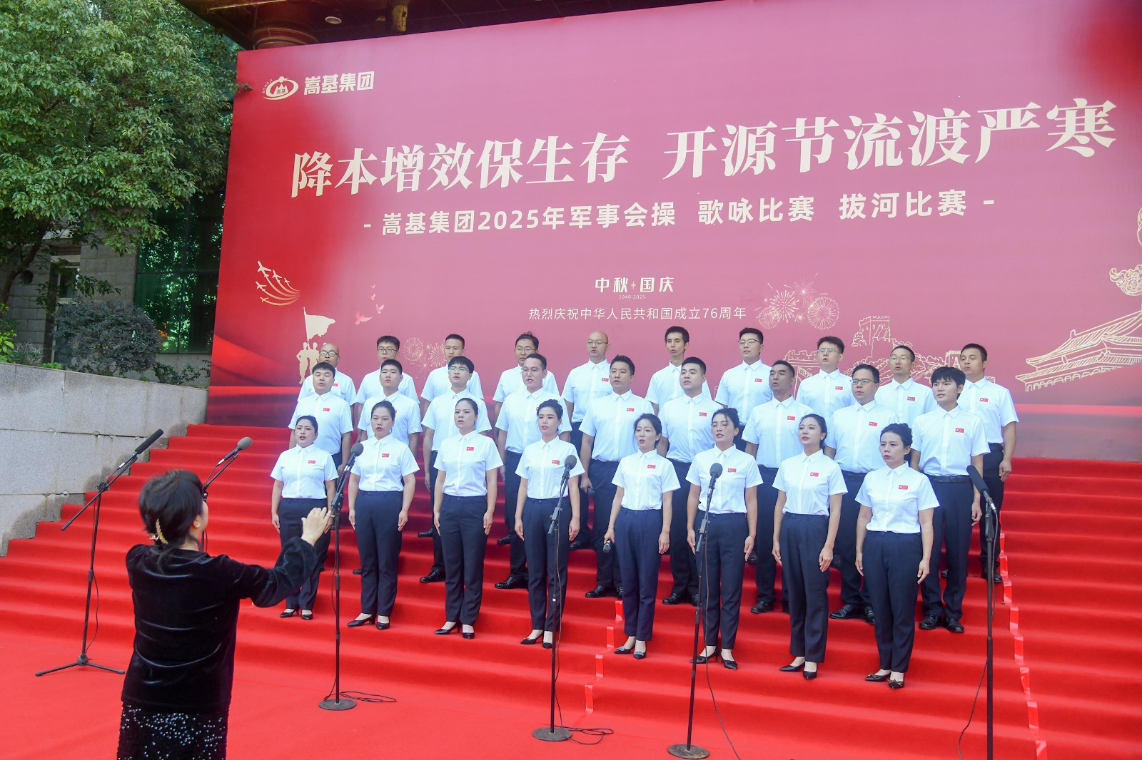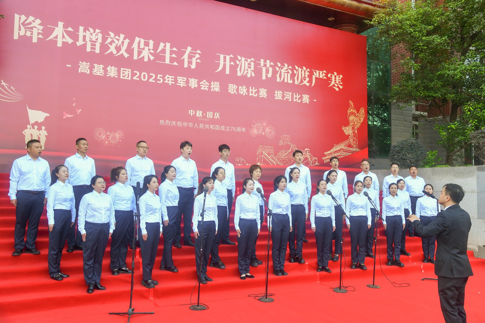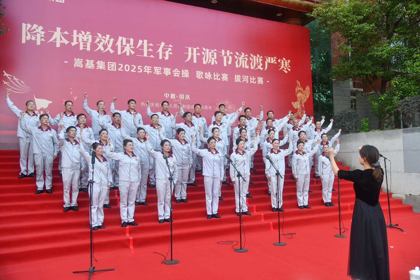 本次活動依次進行了歌詠比賽、軍事會操和拔河比賽三項賽事。歌詠比賽中,各代表隊精神飽滿,《保衛(wèi)黃河》《強軍有我》《愛永在》等經(jīng)典曲目接連唱響,歌聲嘹亮,情感真摯,或氣勢磅礴,或深情婉轉,充分表達了嵩基員工對祖國的深厚情感與美好祝?!,F(xiàn)場氣氛熱烈,掌聲此起彼伏。經(jīng)專業(yè)評委現(xiàn)場打分,嵩基水泥代表隊榮獲冠軍,中岳電力代表隊獲得亞軍,嵩基新材代表隊獲得季軍。